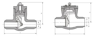 Cineál H64Y 1500 (Lb) ~ 2500 (Lb) comhla seiceála táthú butt teocht ard le haghaidh Class1500 ~ 2500Lb, teocht oibriúcháin -29 ~ 570 ℃ stáisiúin chumhachta peitriliam, ceimiceacha, teirmeacha agus coinníollacha eile an phíblíne.